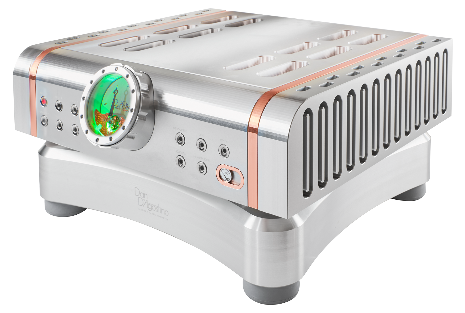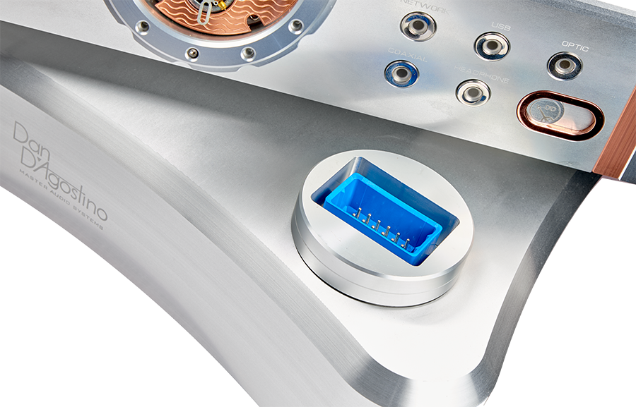 The final output stage features new output transistors sourced for the Relentless Monoblock amplifiers. A total of 28 high-speed, high-output transistors per channel are used, each mounted for maximum thermal transfer to the copper heat sinks. A capacitor/resistor network connected to the base of each transistor ensures stability even at high frequencies and with low-impedance loudspeakers. As with all Dan D’Agostino Master Audio Systems components, the Momentum MxV Integrated Amplifier features discrete, direct-coupled, balanced circuitry, the most accurate circuit platform possible.