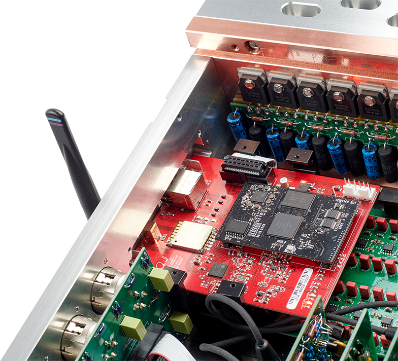 Employing a configurable, modular design, the core line stage section can be augmented to include modules for digital streaming as well as phonostage. When fully equipped, the Momentum MxV Integrated Amplifier topology is a seamless circuit working as one from input to output, optimizing performance in a way otherwise not possible.