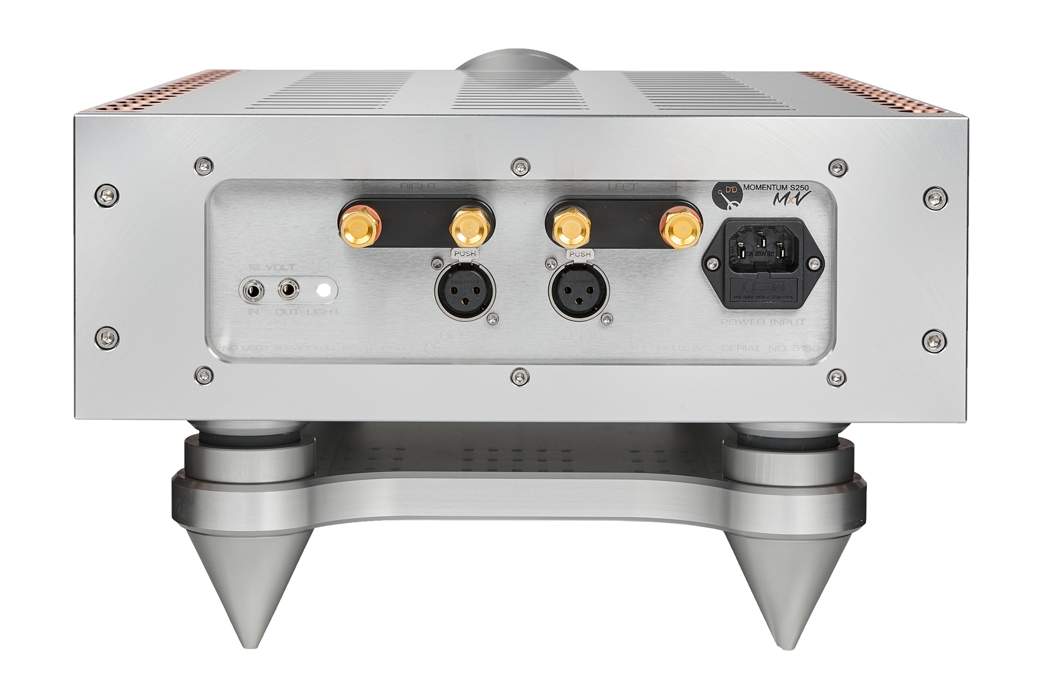 Delivering the extraordinary sound quality of the Momentum M400 MxV Monoblock, the Momentum S250 MxV Stereo Amplifier features techniques and topologies developed and implemented in the Relentless Series. This fullest expression of the Momentum circuitry is reflected in the model’s name, MxV. Those with a physics background will recognize that MxV, or Mass times Velocity, is the equation for Momentum.